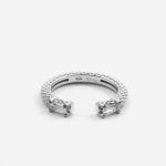La Fedina Puntinata Small Mirror presenta un piccolo zircone rettangolare dal tipico taglio baguette. La pietra, più piccola, è posta in orizzontale, predisposta a fondersi con le altre fedine della stessa collezione.